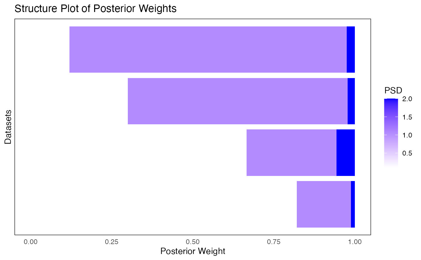 A numeric matrix of posterior weights (datasets as rows, PSD as columns).
