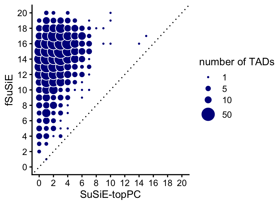 labs(x = "number of CpGs",y = "number of TADs",title = "fSuSiE") +