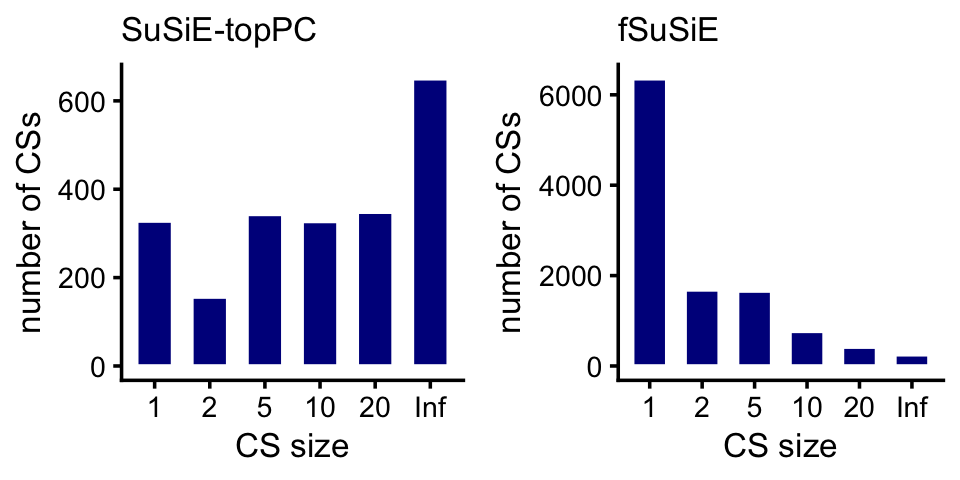 labs(x = "number of CpGs",y = "number of CSs",title = "fSuSiE") +
