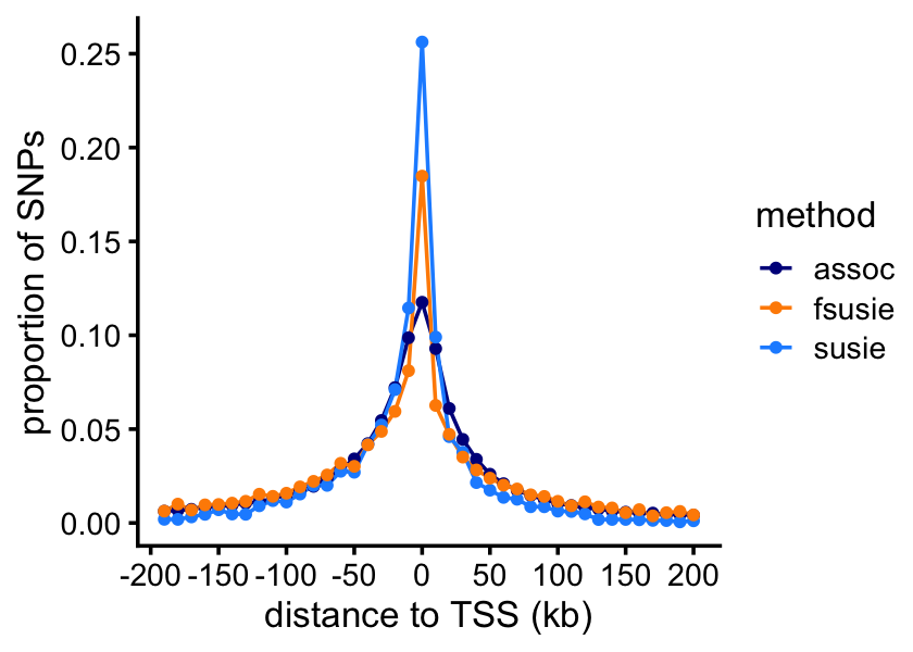 Rmd 8e17486 Peter Carbonetto 2025-03-24 Added code to create a plot showing the density of causal SNPs near the closest TSS.